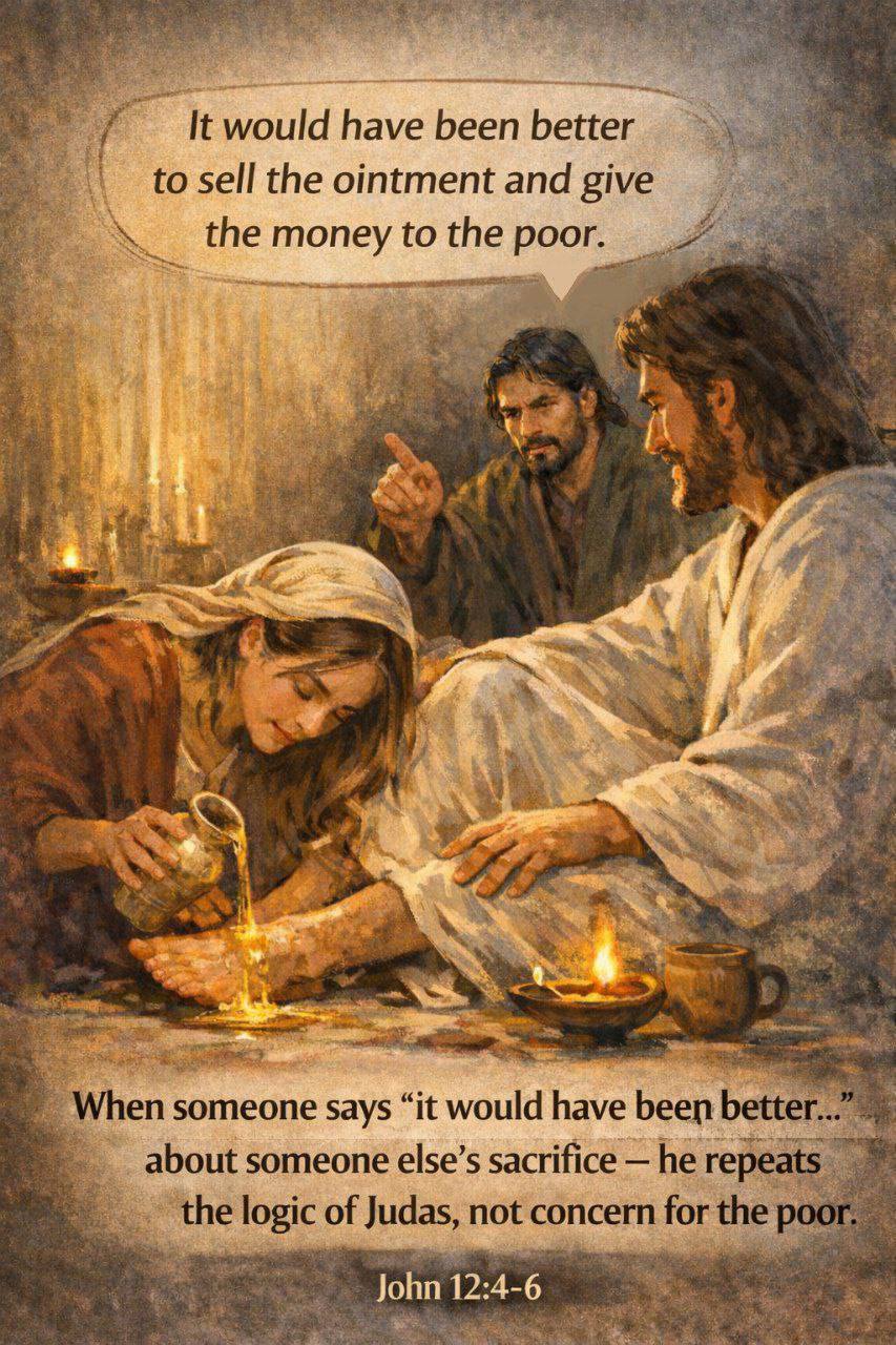 Do not judge where others choose to give their money. Not every “it would have been better…” is genuine concern — sometimes it is the logic of Judas. God looks not at redistribution, but at the heart.