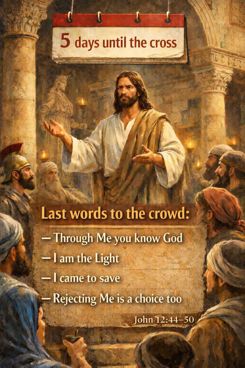 On the day the people were ready to glorify Him as King, Jesus spoke not about glory but about salvation. He used the last opportunity to address them: revealing who He is, warning about the consequences, and offering life. In five days there would be the cross, but while the voice still sounds, it is the final call of light before the coming darkness.