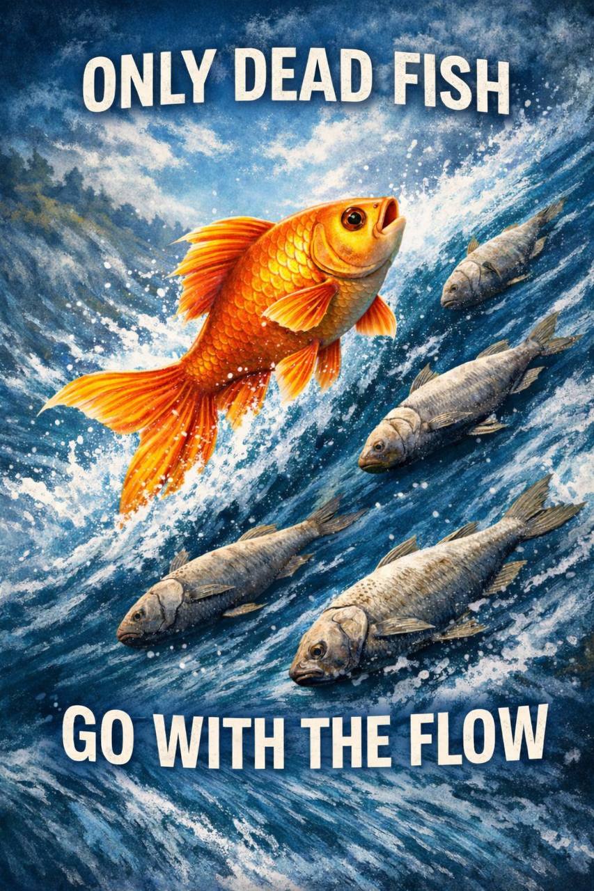 This phrase perfectly illustrates Jesus’ point. Going with the flow is easy. It requires no resistance, no struggle, no decisions. But that is exactly how something lifeless moves. A living fish swims against the current. It takes strength, purpose, and inner life. In the same way, life with God moves against the current of sin, habits, and excuses.