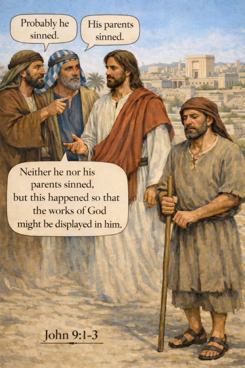 The disciples’ question sounds logical. They see suffering and immediately look for a cause. In their thinking, there were only two acceptable explanations: