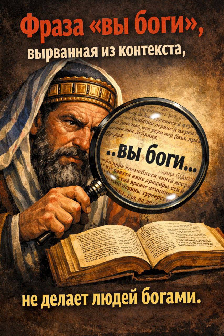 Иоанна 10:31–42 показывает: фраза «вы боги» — это не учение о природе человека, а аргумент Иисуса против ложного обвинения; миф же «все люди — боги» появляется только тогда, когда текст читают без контекста и без логики.