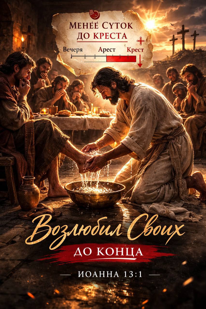 До распятия остаётся меньше суток. Впереди — Гефсимания, суд, плети и Голгофа. Но крест начинается не на холме. Он начинается в комнате — с полотенца и умывальницы.