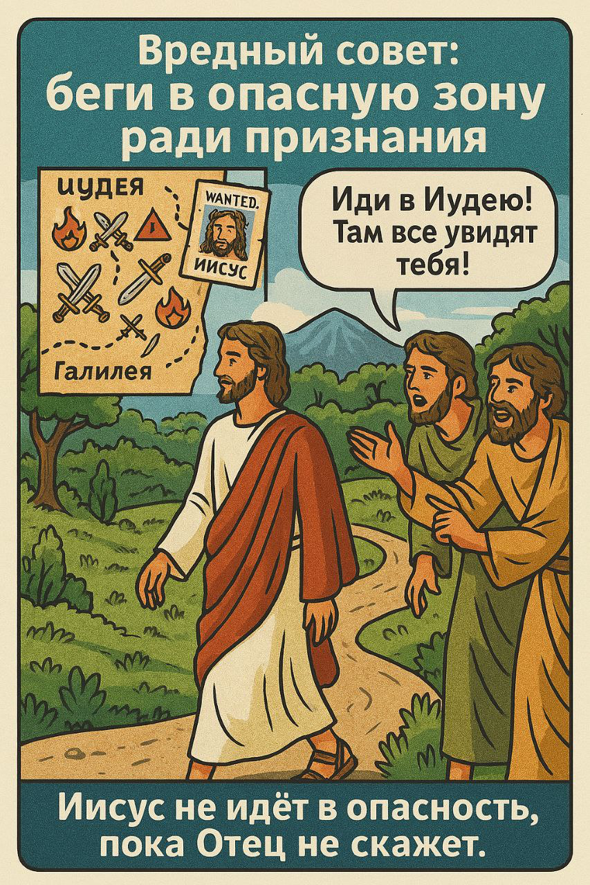 Братья дают Иисусу «инструкцию», как и куда Ему нужно идти. Они искренне думают, что подсказывают лучший путь — но их «стратегия» идёт полностью вразрез с Божьим планом.