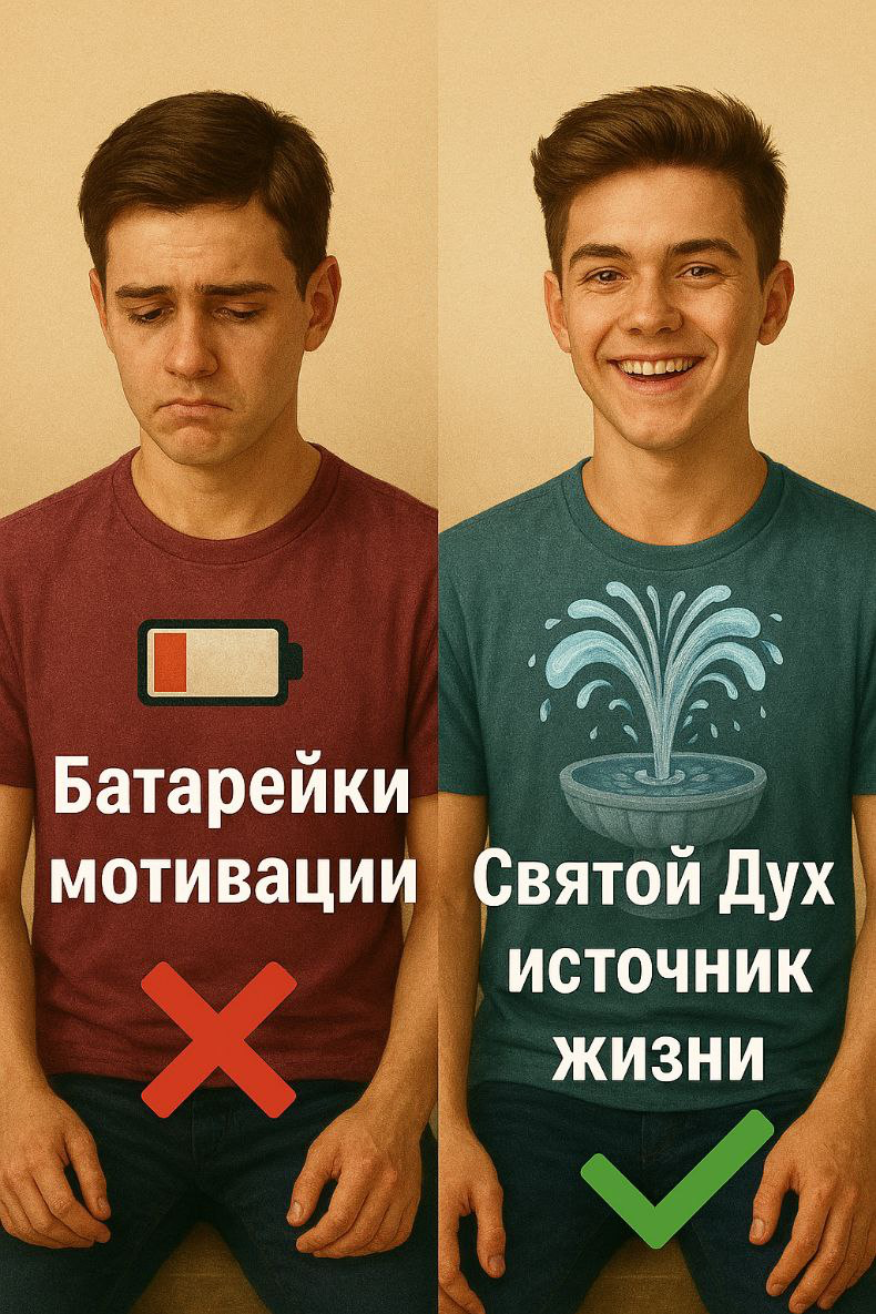⚡ Мы часто живём на «батарейках мотивации»: зарядились — пошли; разрядились — всё остановилось. Это нестабильно. Настоящая сила христианина — не в эмоциях и не в вдохновении, а в Источнике, Который всегда доступен.