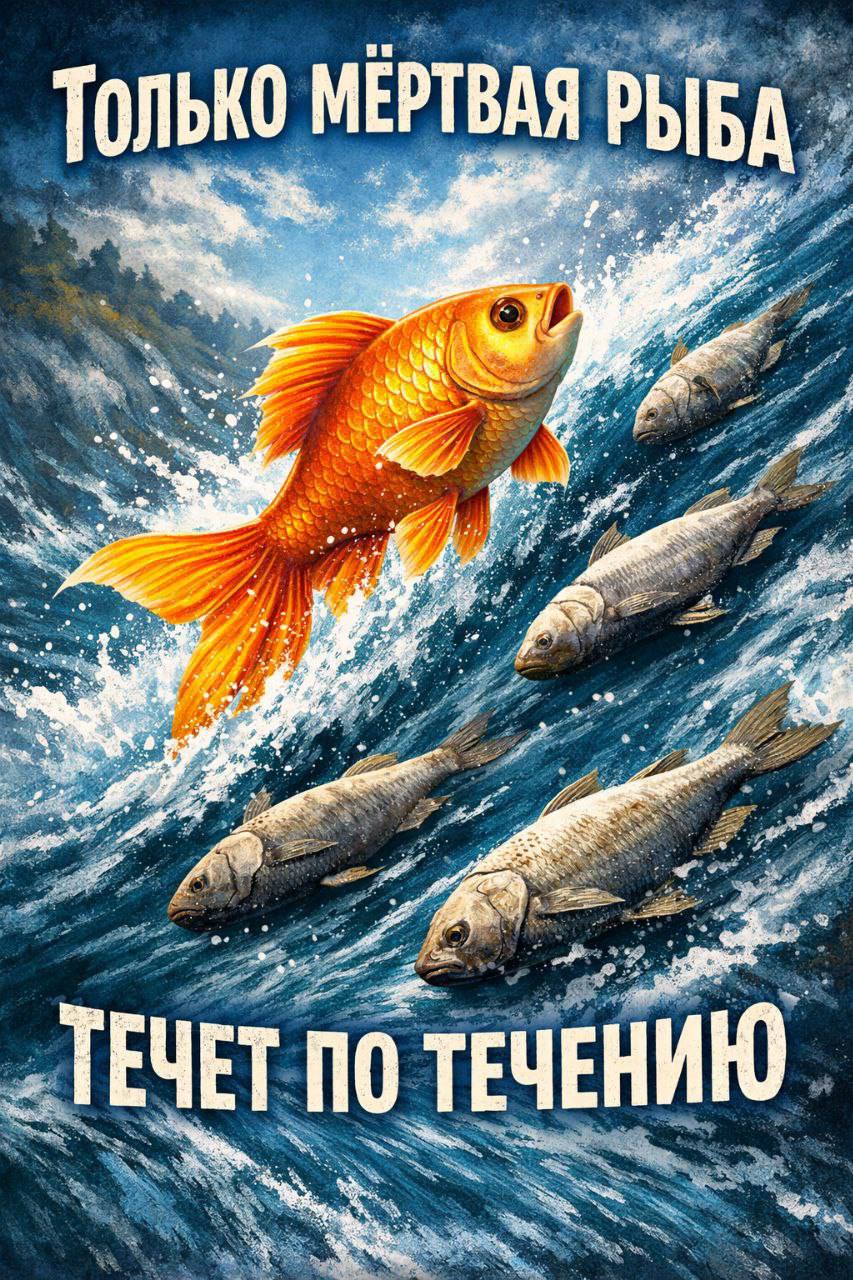 Эта фраза точно иллюстрирует мысль Иисуса. Плыть по течению — легко. Не нужно усилий, борьбы, решений. Но именно так движется то, в чём нет жизни. Живая рыба сопротивляется течению. Это требует силы, цели и внутреннего импульса. Точно так же и жизнь с Богом — она идёт против общего потока греха, привычек и оправданий.