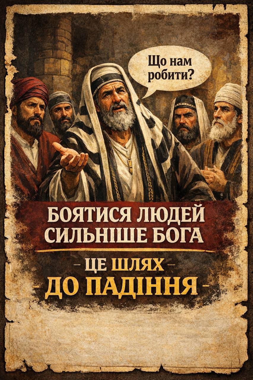 Фарисеїв турбує не істина й не праведність, а наслідки. Вони бояться, що віра людей в Ісуса призведе до втручання Риму, втрати статусу, влади й контролю. Їхній страх спрямований не на Бога, а на людей; не на Божий суд, а на політичні та соціальні втрати.