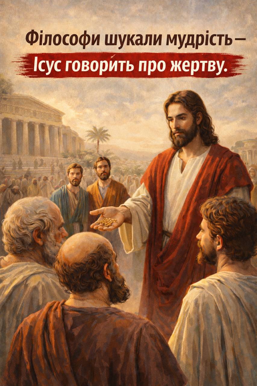 Парадокс Царства: через жертву приходить слава. Хрест, що виглядає поразкою, стає перемогою. Через смерть одного Зерна народжується життя для багатьох. Філософи шукали мудрість. Ісус відкрив життя через жертву.