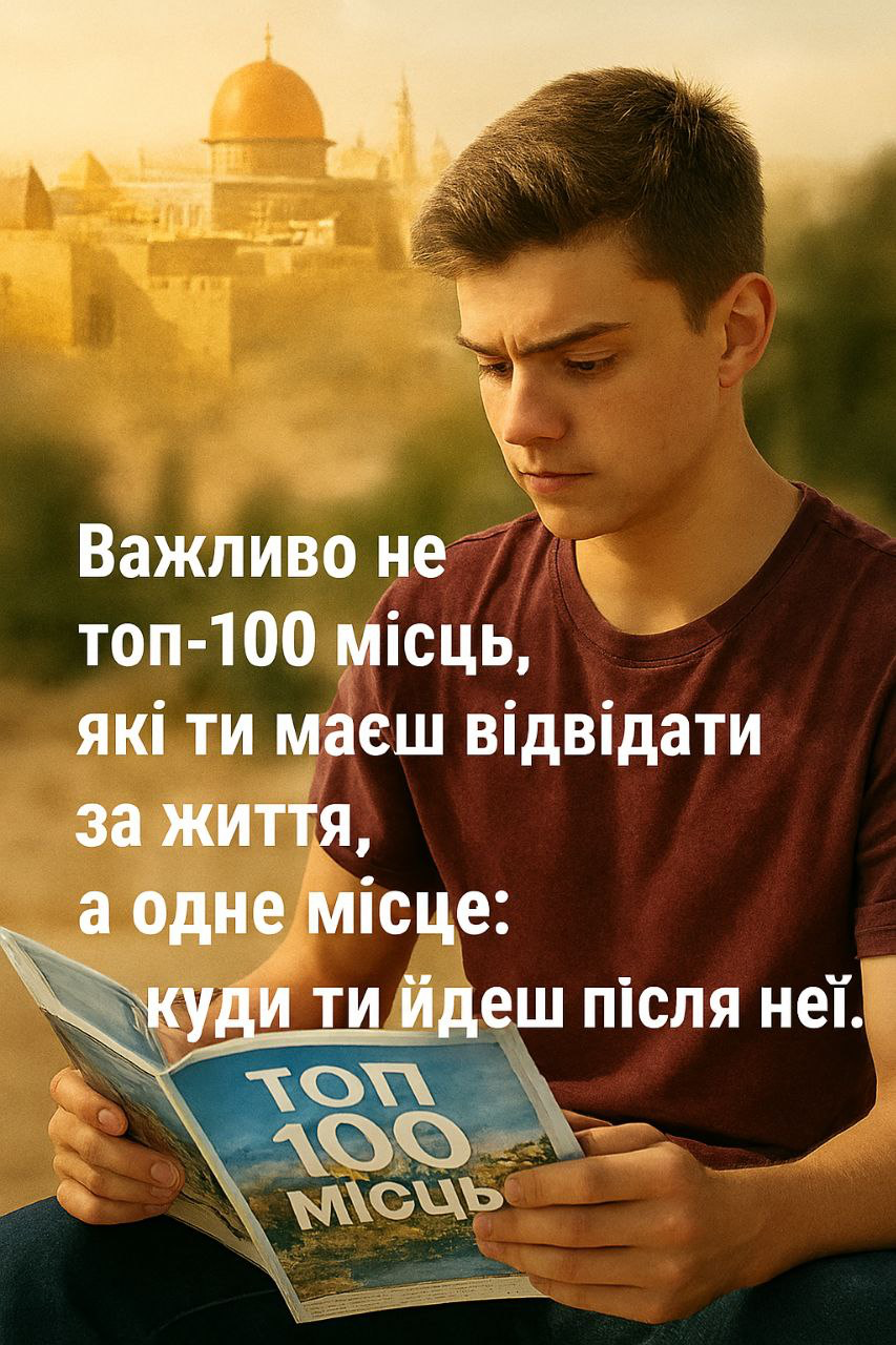 📚 Сьогодні існує багато списків на кшталт «100 місць, які потрібно відвідати перед смертю». Але Євангеліє не про те, щоб «встигнути побачити світ». Воно про те, щоб надійно досягти одного місця — вічності з Богом.
